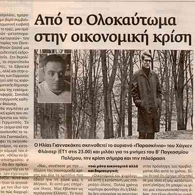 I had been trying for a long time to get Fleischer to take part in a documentary for “Paraskinio”, but he had declined in many ways. He wanted it very much, but at the same time he feared it.
